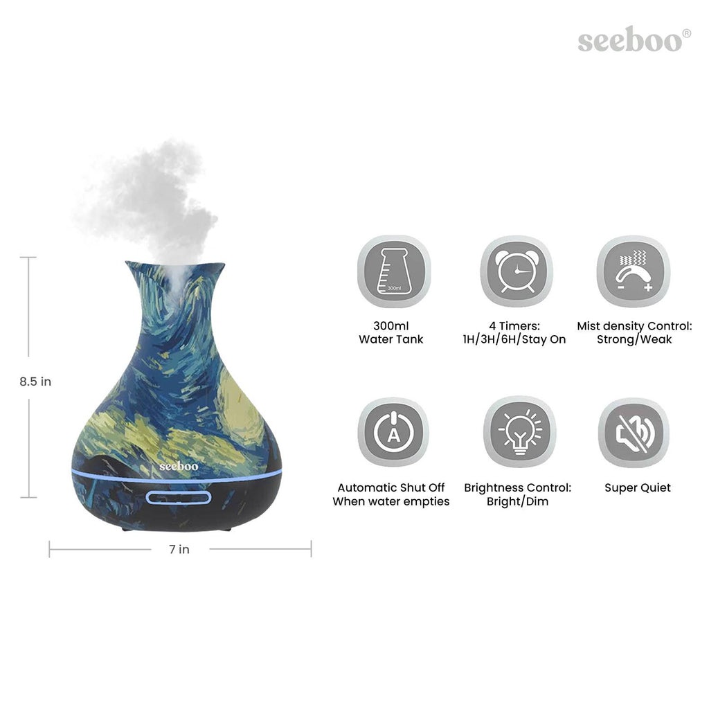 • Working time: up to 12 hours Suitable for rooms 15m x 15m Diffuser dimensions - 6.3 x 8.4 inches.