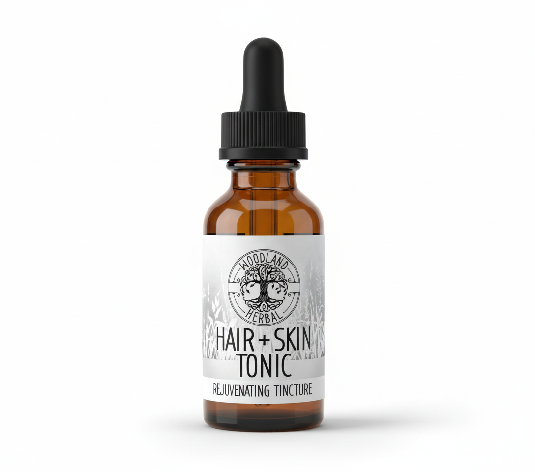 This potent blend of medicinal plants can be used as a supplement to strengthen and restore hair and nail health, inspire new growth, while boosting skin and scalp health. This nutrient rich tonic gives the body what it needs to build and maintain the integumentary layer, the outer layer of our bodies. We start with Bamboo and Horsetail as they are tried and true natural sources of silica, which plays a crucial role in the production of collagen in the skin and the repair of connective tissues in hair and nail beds. It’s often referred to as the “beauty mineral.” Then we blend in Red Clover to aid male and female pattern baldness and to balance hormones, Nettle because it’s rich in vitamins and minerals our bodies need, Calendula for its skin and scalp health support properties as well as its inflammatory support and soothing action, and Gotu Kola to ease wrinkled and sagging skin while also strengthening hair and nails. Dandelion is added for antioxidant and detoxification actions, and for its vitamin A and beta carotene content, which works to reduce signs of aging, acne, and inflammation while promoting collagen production. We add Cardamom because its a skin-loving herb as we like to call them, for it contains anti-aging properties, boosts collagen production, improves complexion, eases acne scars, and stimulates hair growth, while also boosting the immune system. We finish with Rosemary to promote hair growth as it stimulates hair follicles and increases blood flow to the scalp, but what’s more is Rosemary also reduces scalp conditions, while improving hair strength, texture and shine.‡