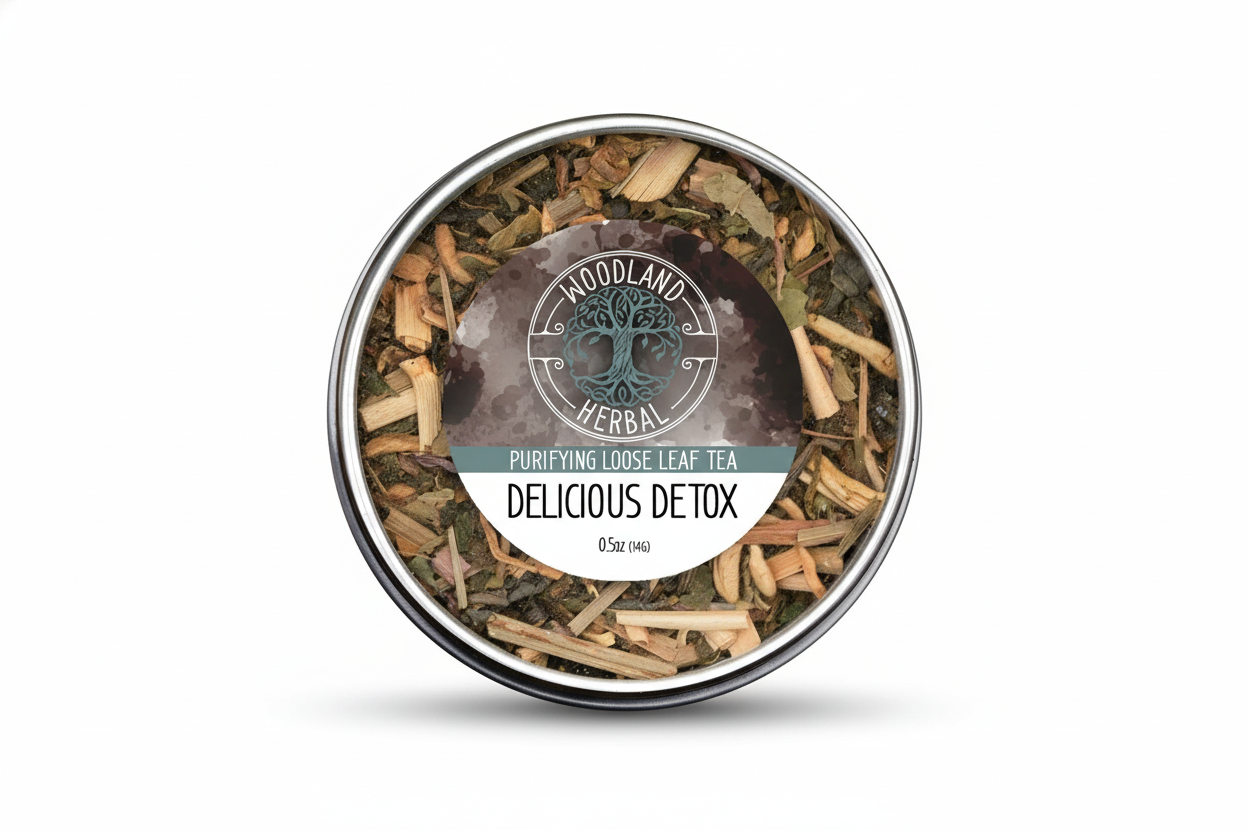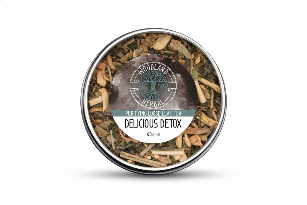 Our Delicious Detox Tea is a powerful, but gentle detoxifier, as it aids in removing toxins from the body and cleansing organs, while promoting general wellness and balance within the body. This detox tea can be employed for a cleansing two week period where you fast from sugars, alcohol, and other toxin-riddled foods, or as a part of your workout regimen and for weight management, or simply enjoyed as an occasional feel better tonic. Where most detox teas taste bitter and therefore turn off the user, Delicious Detox leans on medicinal plants, flowers and roots to cleanse the body. What's surprising about our Delicious Detox Tea is it's not only effective, but it's amazingly delicious on the palate. The mixture of Honeysuckle with Green Tea and Lemongrass comes through beautifully in the taste. We start our Delicious Detox tea with a base of crisp and refreshing Green Tea and citrusy Lemongrass, then marry in powerful detoxifying plants like Dandelion leaf, Burdock root, and Ginger root, before adding nutrient rich Stinging Nettle, fungi powerhouse Red Reishi mushroom, and finish with purifying flowers of Honeysuckle and Red Clover.‡