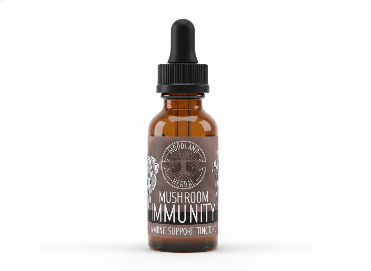 Herbal extraction of Lion's Mane* (Hericium erinaceus), Turkey Tail* (Trametes versicolor), Cordyceps* (Ophiocordyceps sinensis), Red Reishi* (Ganoderma lucidum), Maitake^ (Grifola frondosa), Chaga* (Inonotus obliquus) in Grain-based EtOH Menstruum, Vegetable Glycerin.