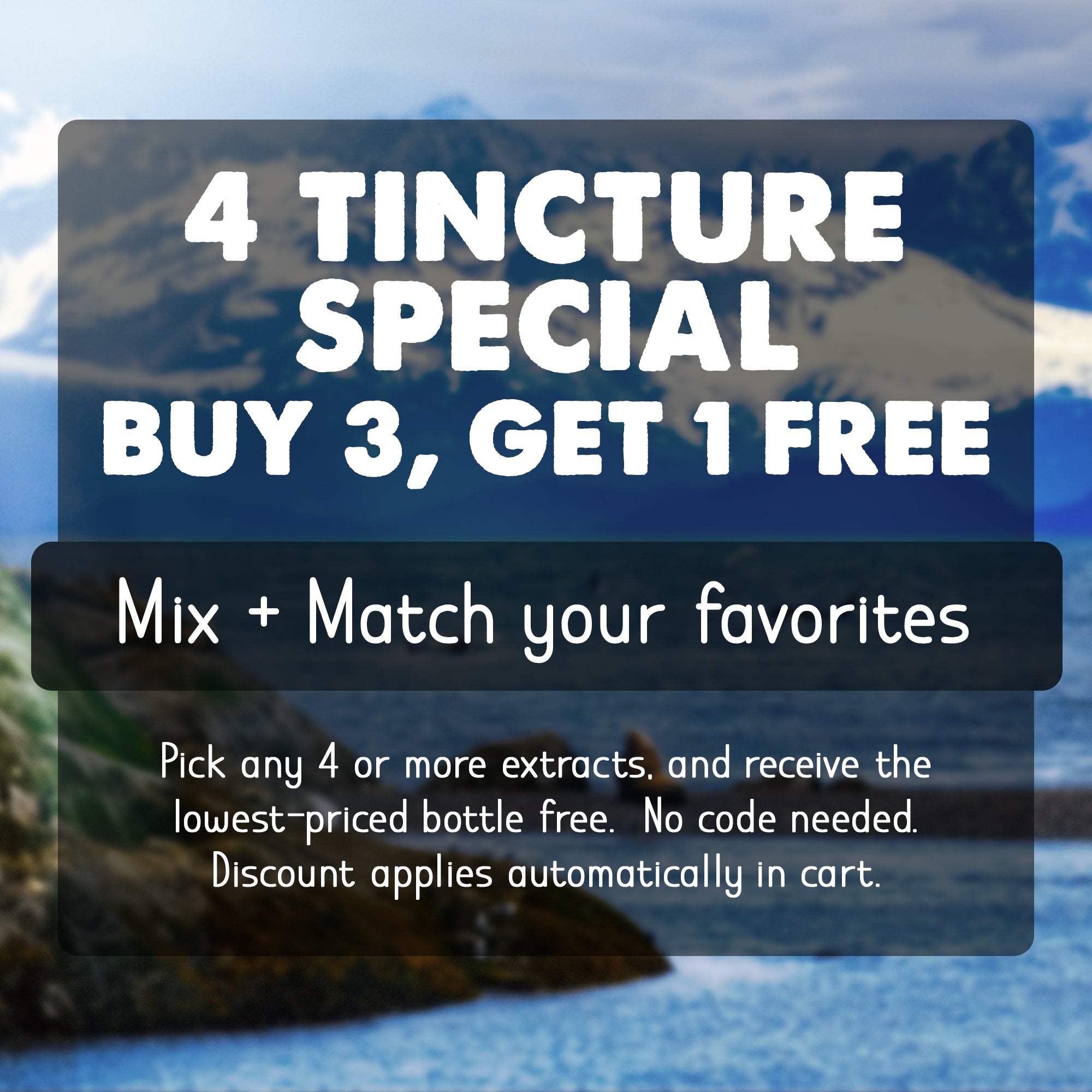 *4 TINCTURE/EXTRACT SPECIAL* Buy 3, Get 1 Free: Mix & Match your favorites. Pick any 4 or more tinctures/extracts, and receive the lowest-priced bottle FREE. No code needed. Discount applies automatically in cart.