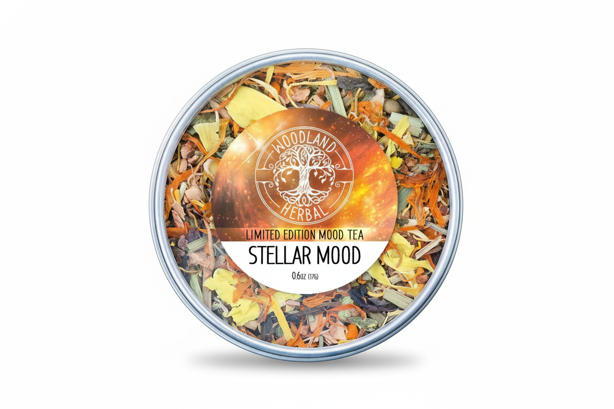 Our Stellar Mood Tea is a special loose leaf blend crafted specifically to aid depression, hopelessness, low moods and seasonal affective disorder (SAD). We employ some of Nature’s happy herbs, like bright and vivid Calendula flower, super rare Yellow Lotus flower, calming Chamomile, exotic Saffron, sweet Honeysuckle, and beautiful Chrysanthemum, then blend in stronger medicinal plants like healthful Ginger, anti-inflammatory aid Turmeric, the good mood herb in St. John's Wort, powerhouse medicine in Rhodiola, and anti-anxiety tonic Lemon Balm, and finish with tasty Lemongrass, zesty Lemon peel and earthy Pu'erh White Tea. SAD is a disorder where mood is affected by lack of sunlight, and a sort of depression can result. Drinking this tea daily along with increased sunlight can curb many of the side effects of SAD, while also boosting low mood, feelings of hopelessness, and can help keep baseline happiness at a sustainable level with prolonged use.‡