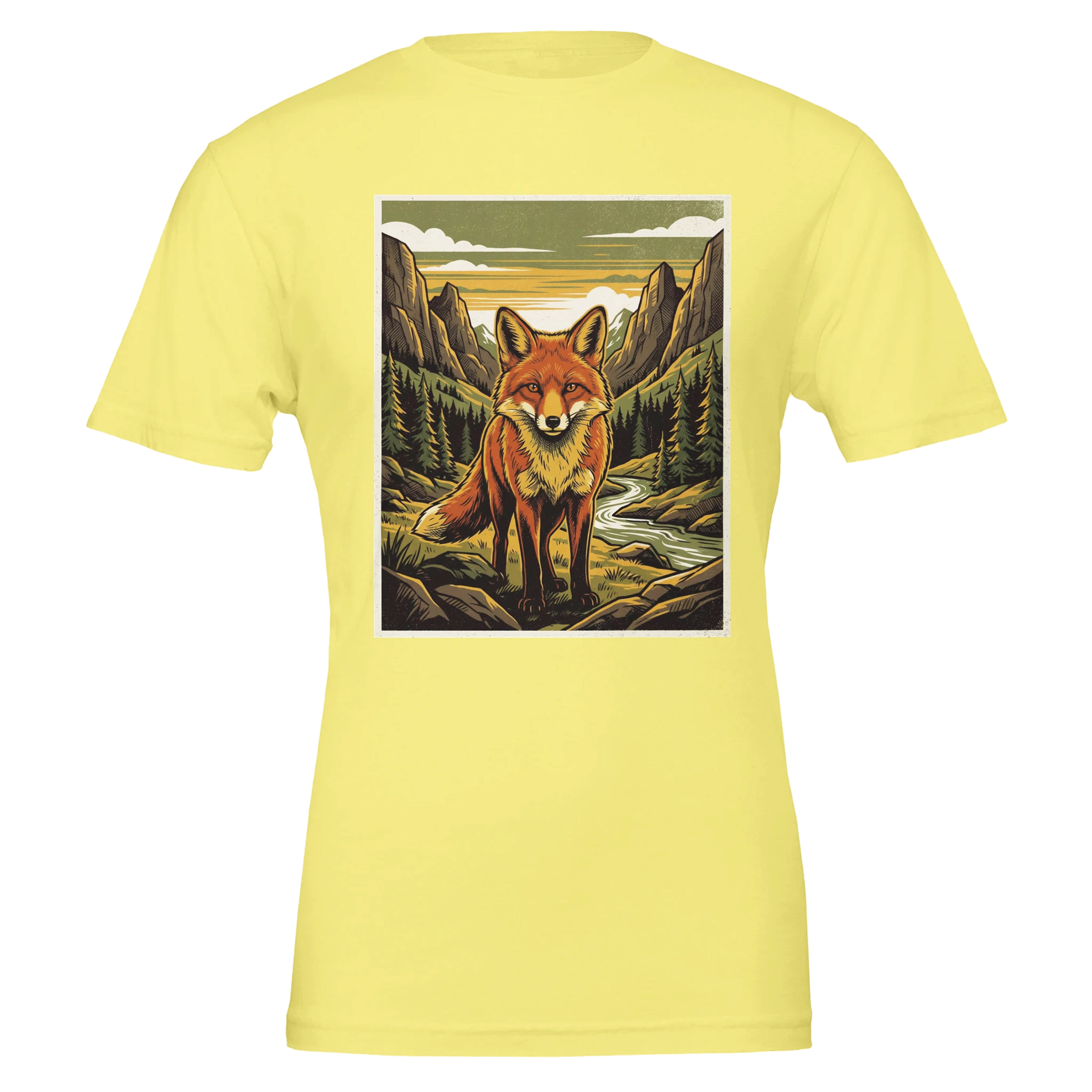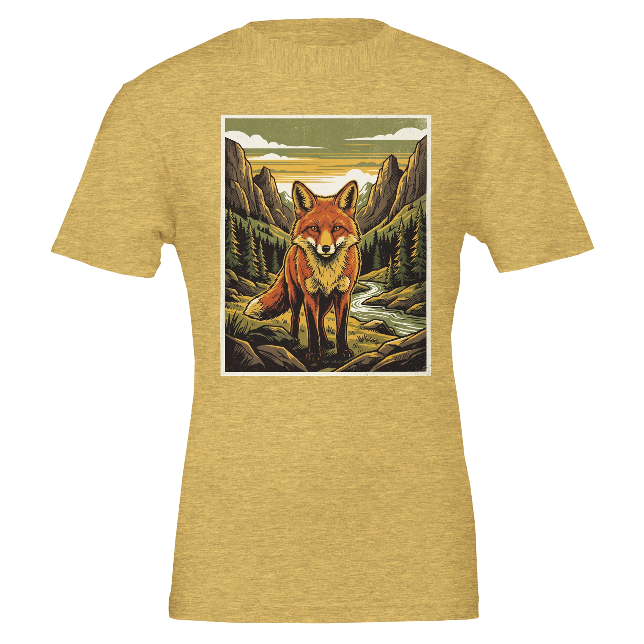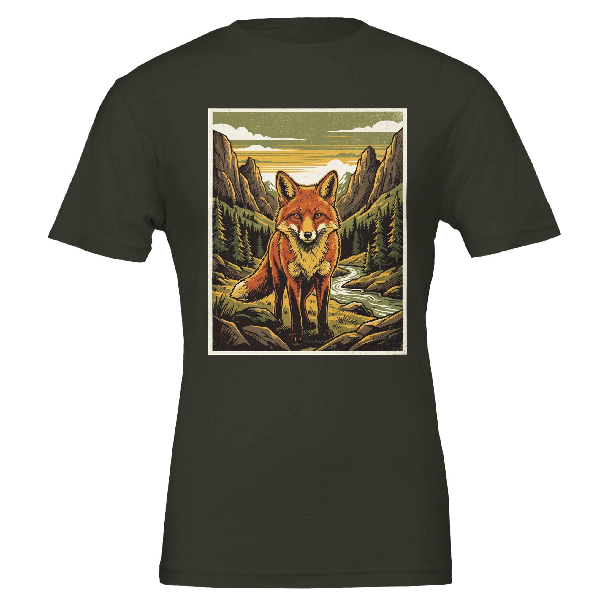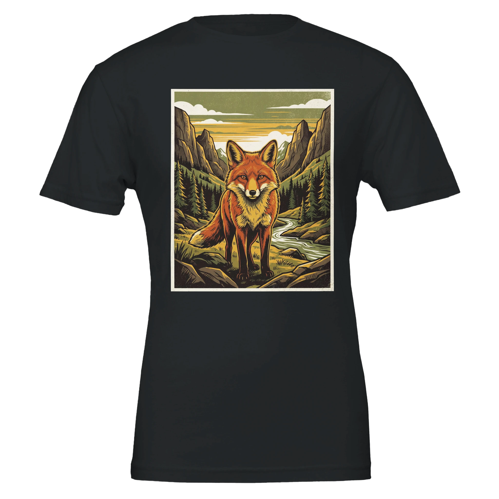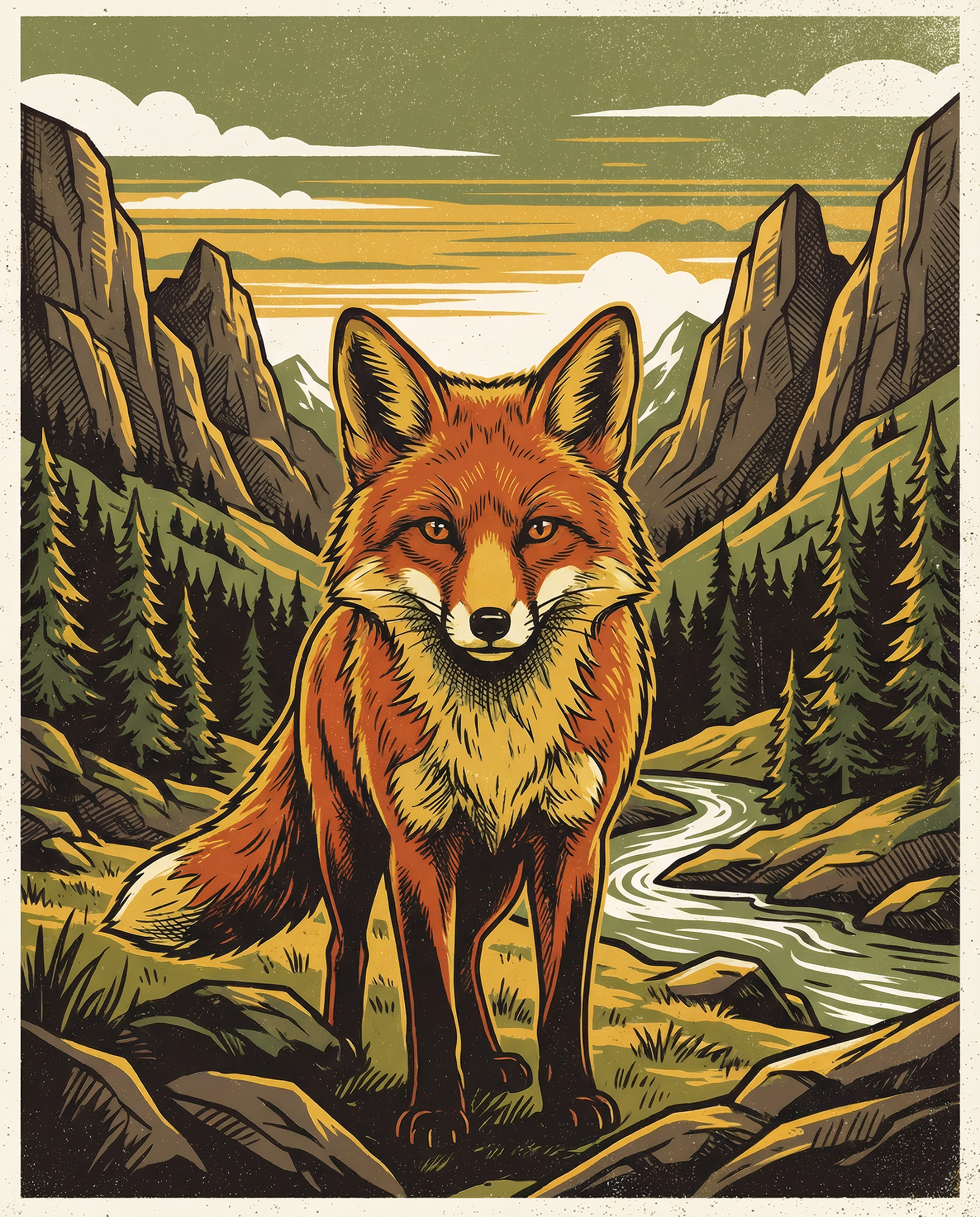A fox with that calm, knowing look—framed by mountains, pines, and a winding river. Steady, watchful, and perfectly at home out there, it’s a nod to the quiet confidence of the wild (and the ones who love it).