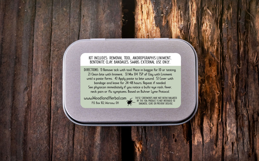 We designed this practical travel-sized care package to help you take fast, effective action after a tick bite, because what you do in the first few hours can make all the difference. We know what a tick bite can do. Educate yourself and help protect yourself and your family. Our tick kit protocol is inspired by the renowned researcher, herbalist and author Stephen Harrod Buhner and his book "Healing Lyme."