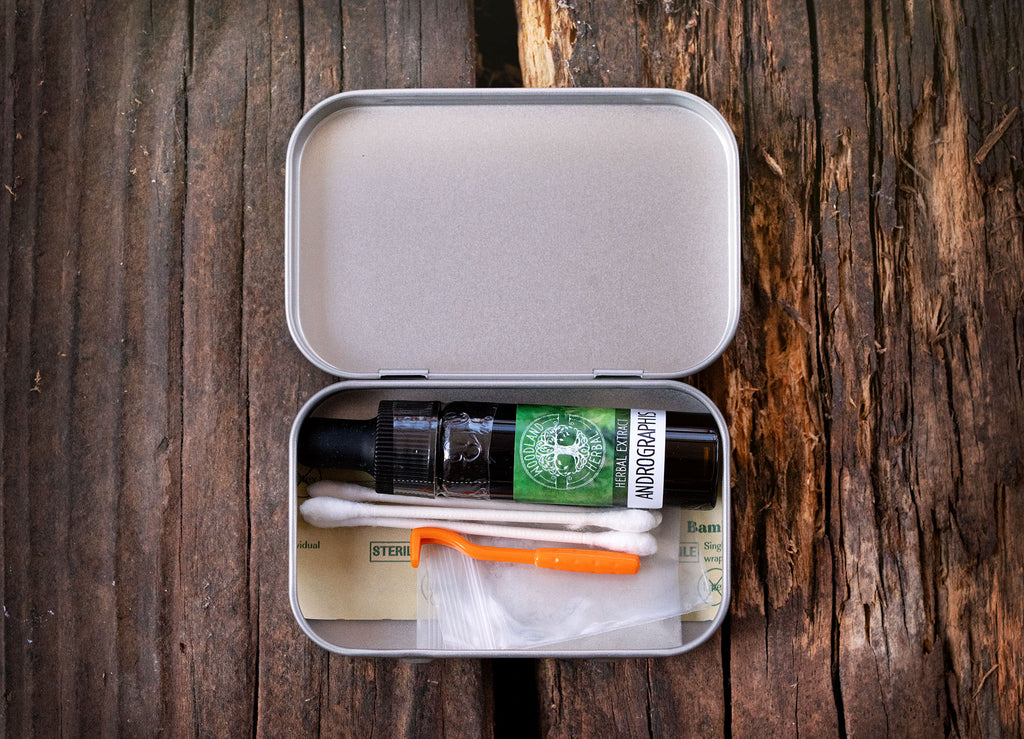 Tick Kit contains: 1 Tick Removal Tool, Andrographis extract (Andrographis paniculata), Bentonite Clay, Natural Bamboo Bandages, Bag for Specimen Collection, Cotton Buds.